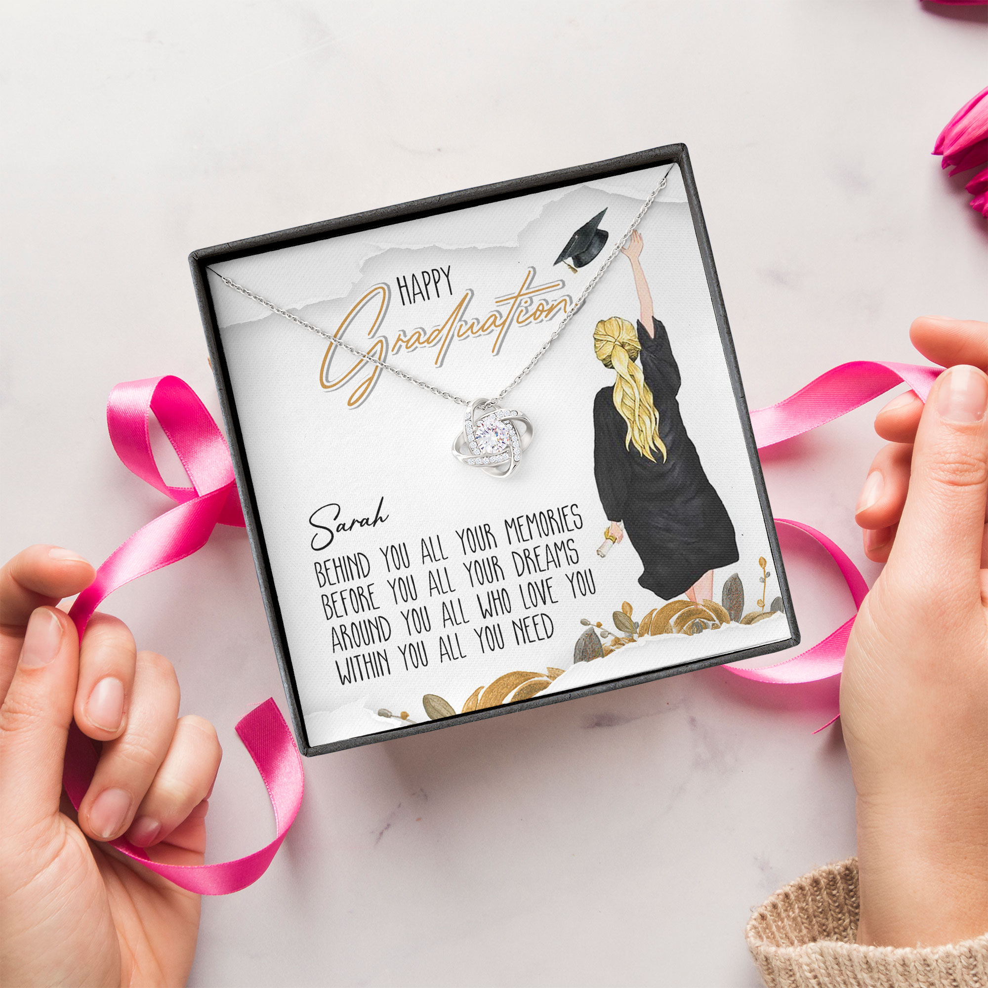 Personalized Jewelry Graduation Gift For Her For Daughter – Graduation Necklace Gift – Love Knot BT1012